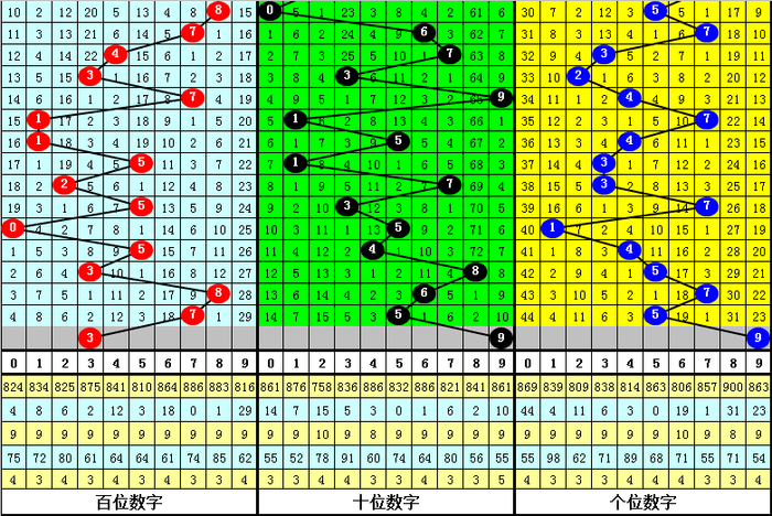 跨度分析:3D上期跨度为2,跨度近期波动较小,一般出现在1-5之间,本期看好跨度出现在4-8之间,最大跨度关注45678,跨度关注6。