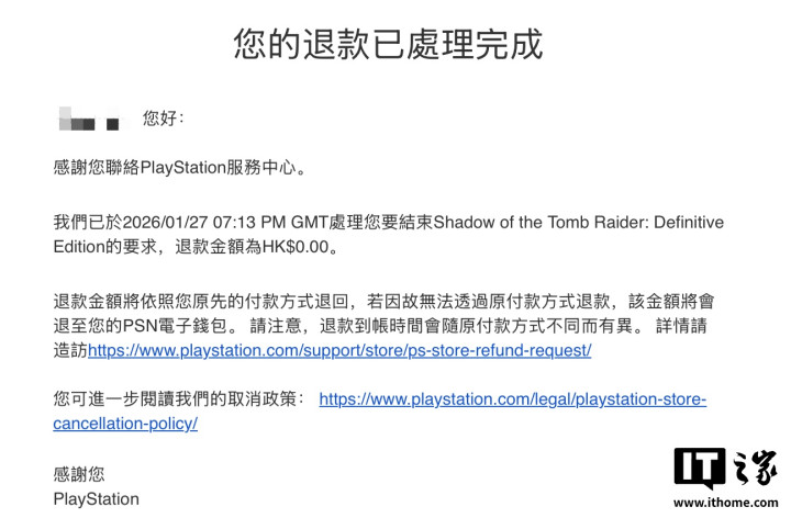IT之家注意到,索尼已于今天开始向“白嫖”用户发放退款(0元),并同步收回相关账号对该游戏的所有权。这意味着所有以此方式“免费”获得游戏的玩家,其游戏库中的该产品现已被移除,无法继续下载或游玩,相当于“白嫖”了2个月游戏。
