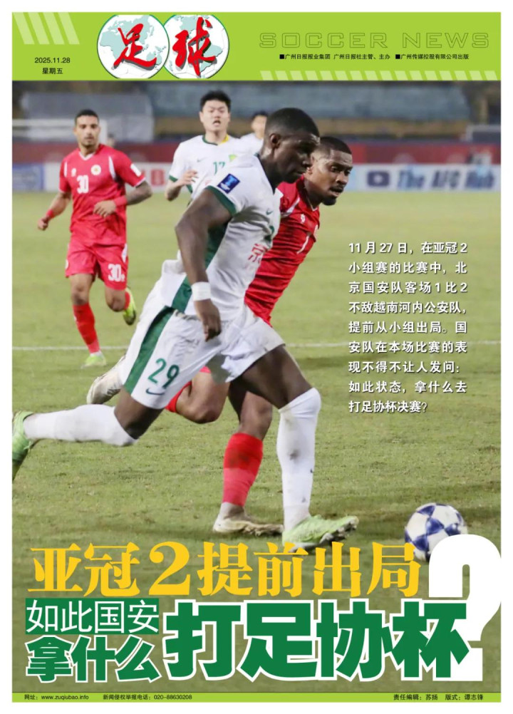 特约撰稿/宋词 11月27日,在亚冠2小组赛的比赛中,北京国安客场1比2不敌越南河内公安,提前从小组出局。本场比赛,国安队在上半时先进一球的情况下,下半时一直被对手压制,在球队错过几次反击的得分良机后,终于受到了惩罚,被对手在76分钟、90分钟的时候连入两球,最终惨遭逆转。面对实力不是很强的越南河内公安,国安队在本场比赛的表现不得不让人发问:如此状态,拿什么去打足协杯决赛?