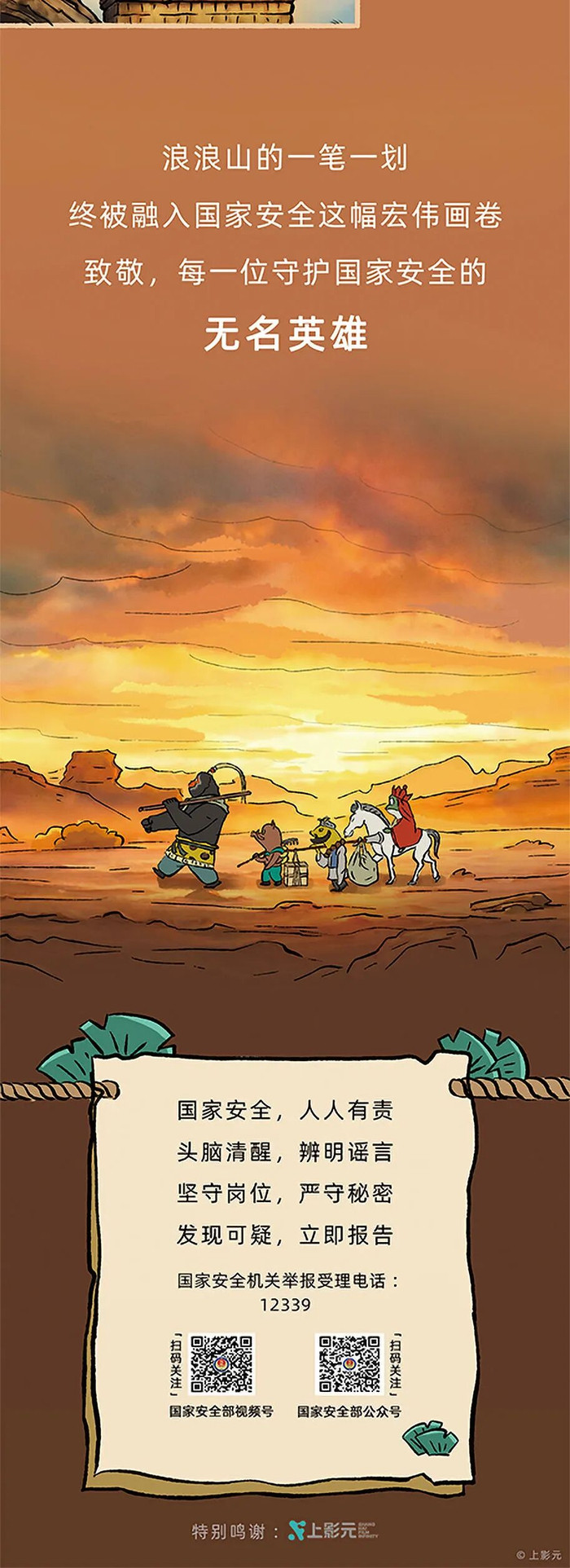 国产动漫电影《浪浪山小妖怪》凭借治愈画风与强烈共鸣火爆全网,圈粉无数。这一次,四个无名小妖将化身守护国家安全的无名英雄,面对西行取经路上暗藏的风险挑战,他们将如何以平凡之力“斩妖除魔”,维护国家安全?今天,跟着我们一探究竟吧!