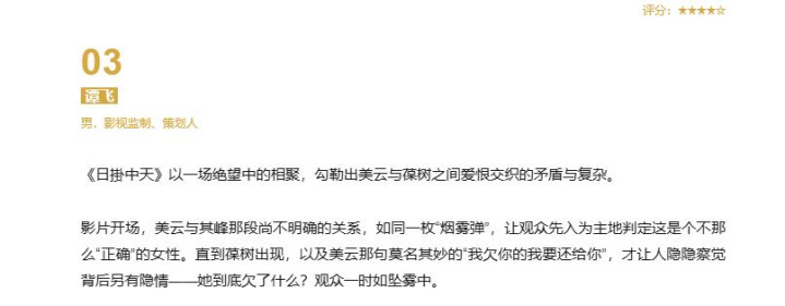 这种有些割裂的两级评价证明了一个事实,《日掛中天》这部影片的受众门槛似乎并没有对普通观众开放。