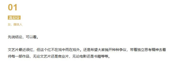 不过这也符合文艺电影一直以来的调性,只有行业内人士非常理解和喜爱,普通观众却并不感冒。