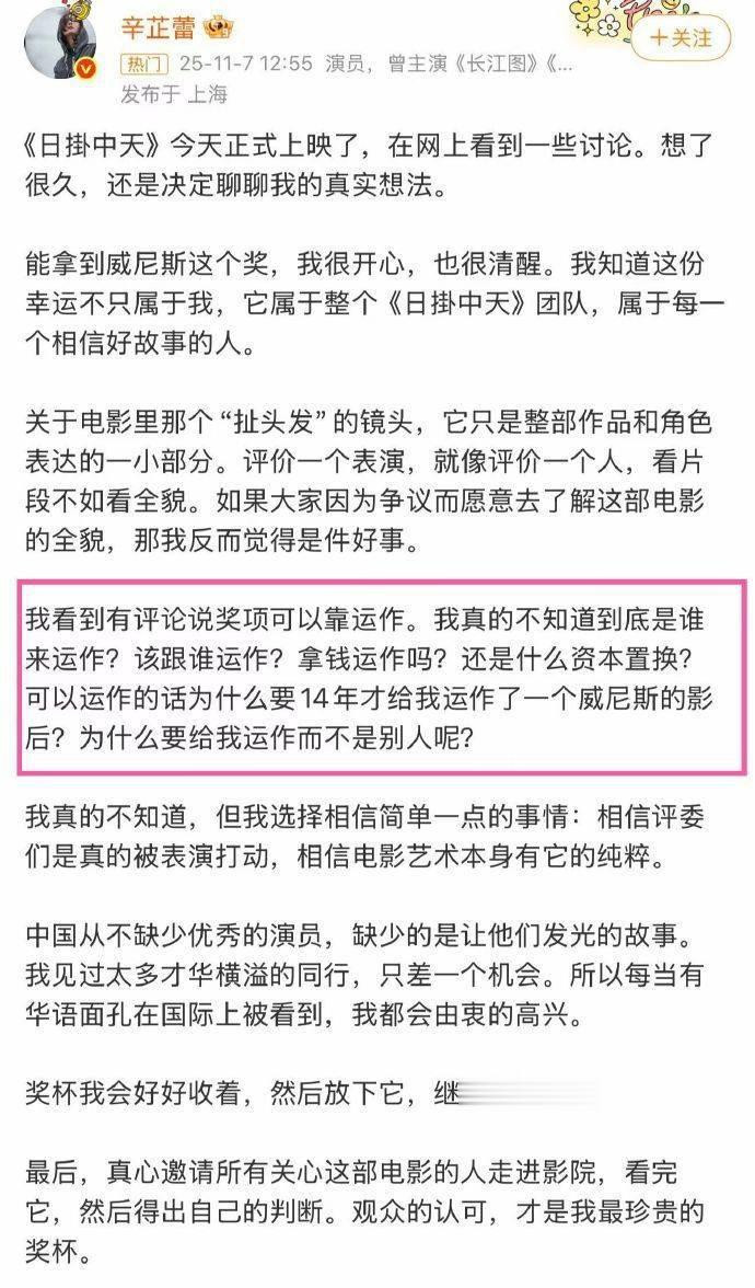 但结合《日掛中天》当中辛芷蕾的表演桥段,让大家推断郝蕾的矛头直指的就是《日掛中天》以及辛芷蕾。
