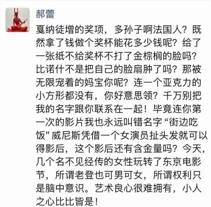 除此之外,影片上映当天,演员郝蕾的一条朋友圈截图也引发了热议。